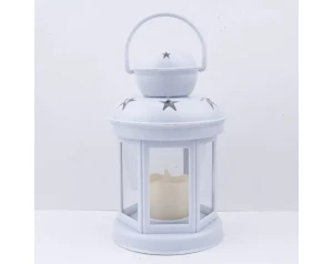 Lampion na roraty wykonany z tworzywa sztucznego w białym kolorze z wycięciami w kształcie gwiazdek. Wewnątrz zamontowana została świeczka LED imitująca naturalny żółty płomień. Latarenka posiada wygodny uchwyt do przenoszenia lub powieszenia.