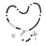 Personalized rosary made of black round beads with your choice of a chalice or a double-sided Our Lady of Czestochowa/John Paul II medal. Petite communion rosary made on jeweler's line.