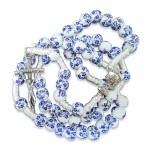 This exquisite ceramic rosary features 6 mm beads decorated with a delicate blue floral pattern on a pure white background. The blue and white color palette is a timeless tribute to Marian devotion, symbolizing purity and grace.