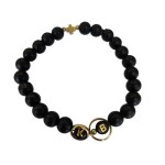 Bransoletka została wykonana z czarnych koralików agatu o średnicy 8 mm. Agat to kamień, który od wieków uważany jest za talizman ochronny, przyciągający pozytywną energię i pomagający w zachowaniu równowagi duchowej. Jego elegancki, matowy wygląd idealnie komponuje się z religijnym charakterem biżuterii, nadając jej wyjątkowego stylu i głębi.