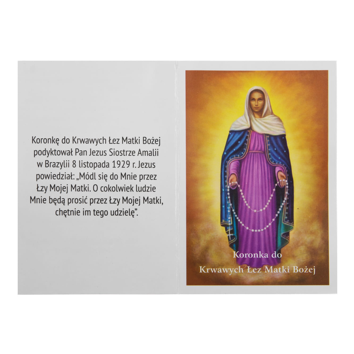 The Coronet for Our Lady's Blood Tears makes a set - a rosary with instructions.