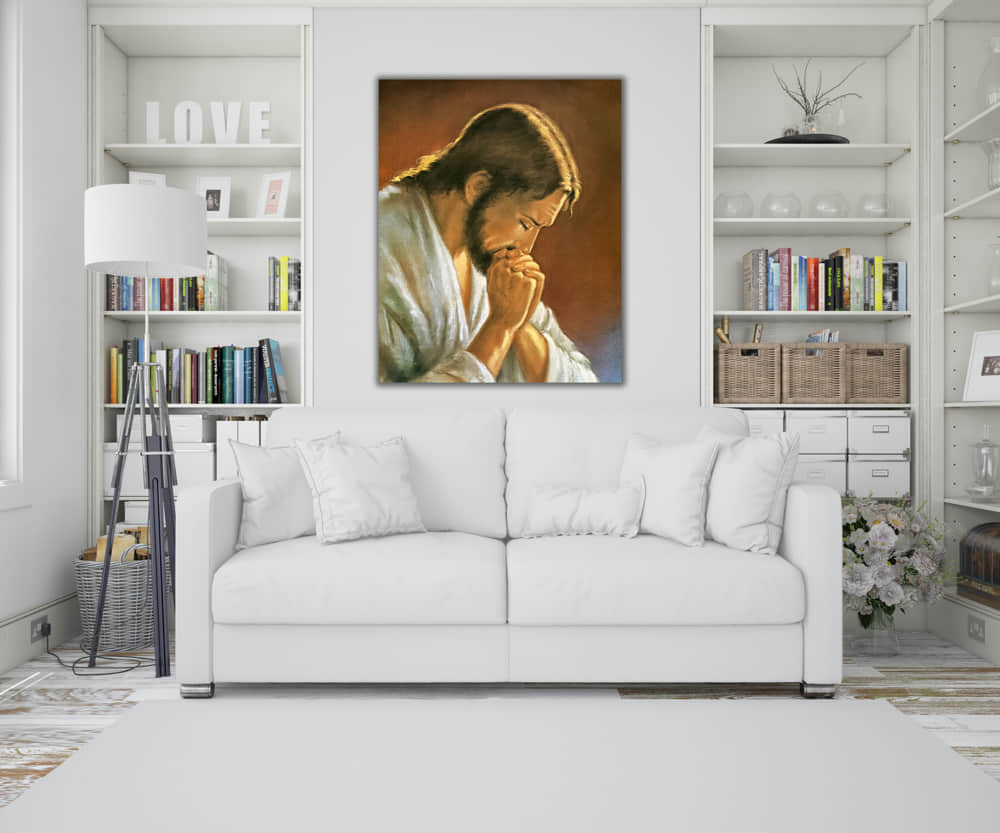 Christ in prayer, print on canvas. A picture with the image of a praying Christ can be an extraordinary help and inspiration in everyday prayer.