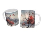 Hochwertiger Keramikbecher mit Heiliger Familie und Weihnachtsgrüßen, spülmaschinenfest mit haltbarem Druck und lichtechten Farben.