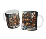 Hochwertiger Keramikbecher mit Heiliger Familie und Weihnachtsgrüßen, spülmaschinenfest mit haltbarem Druck und lichtechten Farben.