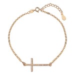 Wyjątkowa bransoletka typu celebrytka z kolekcji Puro Amore. Delikatna, kunsztownie wykonana złocona bransoletka ze srebra pr. 925 z krzyżykiem z osadzonymi na nim cyrkoniami. Bransoletka posiada regulację.