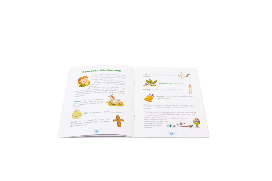 Książeczka pomaga najmłodszym świadomie przeżyć święta Wielkanocne. Zaznajamia je z podstawowymi terminami liturgicznymi, przedstawia głównych bohaterów. Znajdziemy tu wiele interesujących rozważań i informacji dotyczących Wielkiego Tygodnia, Triduum Paschalnego i samego Zmartwychwstania Pańskiego, a także ciekawe zadania ułatwiające dzieciom zrozumienie największych tajemnic wiary chrześcijańskiej.