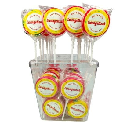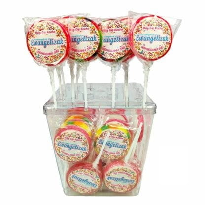Ewangelizaki to ręcznie robione, owocowe lizaki o średnicy około 53 mm, które łączą słodki smak z głębokim przesłaniem chrześcijańskim. Każdy lizak zawiera inspirujące hasła religijne, przypominając o Ewangelii, a kolorowe opakowanie z motywem „Bóg Cię Kocha” sprawia, że są wyjątkowym upominkiem dla dzieci. Sprzedawane są na sztuki lub w opakowaniach po 50 sztuk, idealnych na różne okazje, takie jak katechezy, święta, czy nagrody dla najmłodszych.
