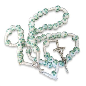 A refreshing and elegant ceramic rosary featuring 6 mm beads adorned with a delicate green leaf and floral pattern. The smooth white ceramic provides a clean, modern aesthetic, while the green accents symbolize growth, life, and hope.
