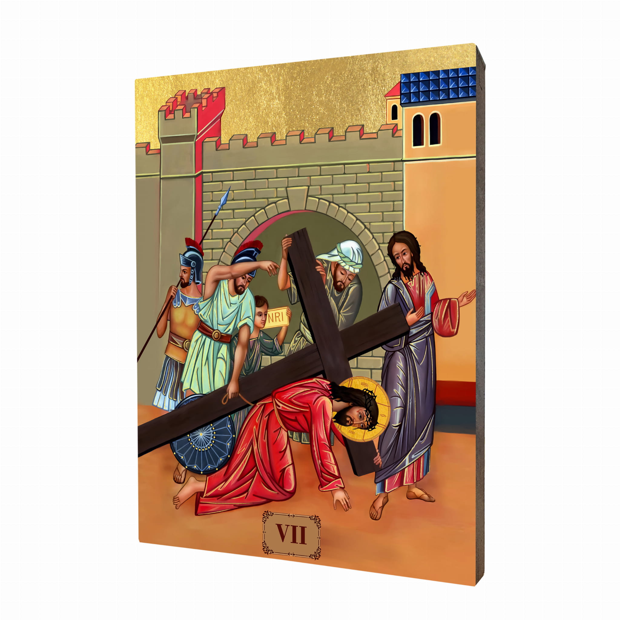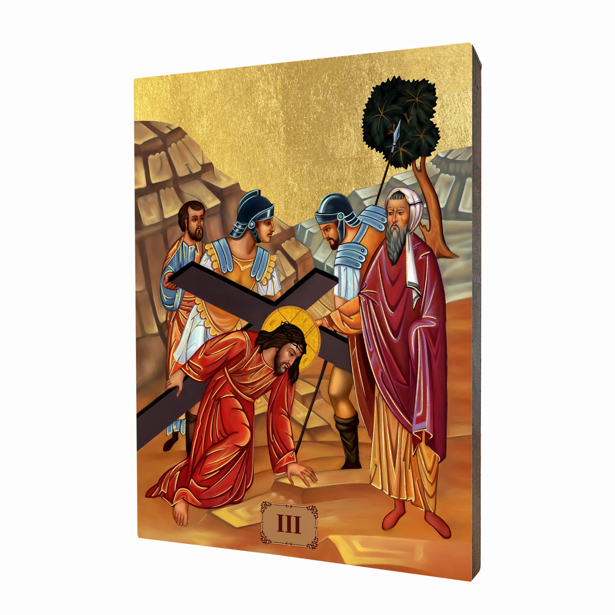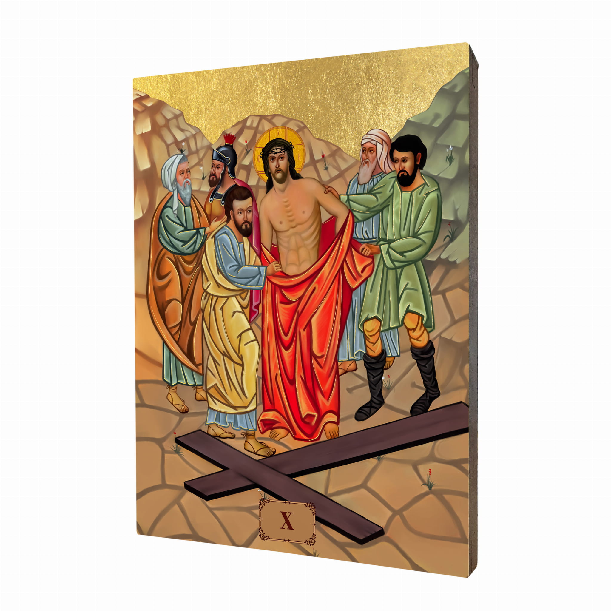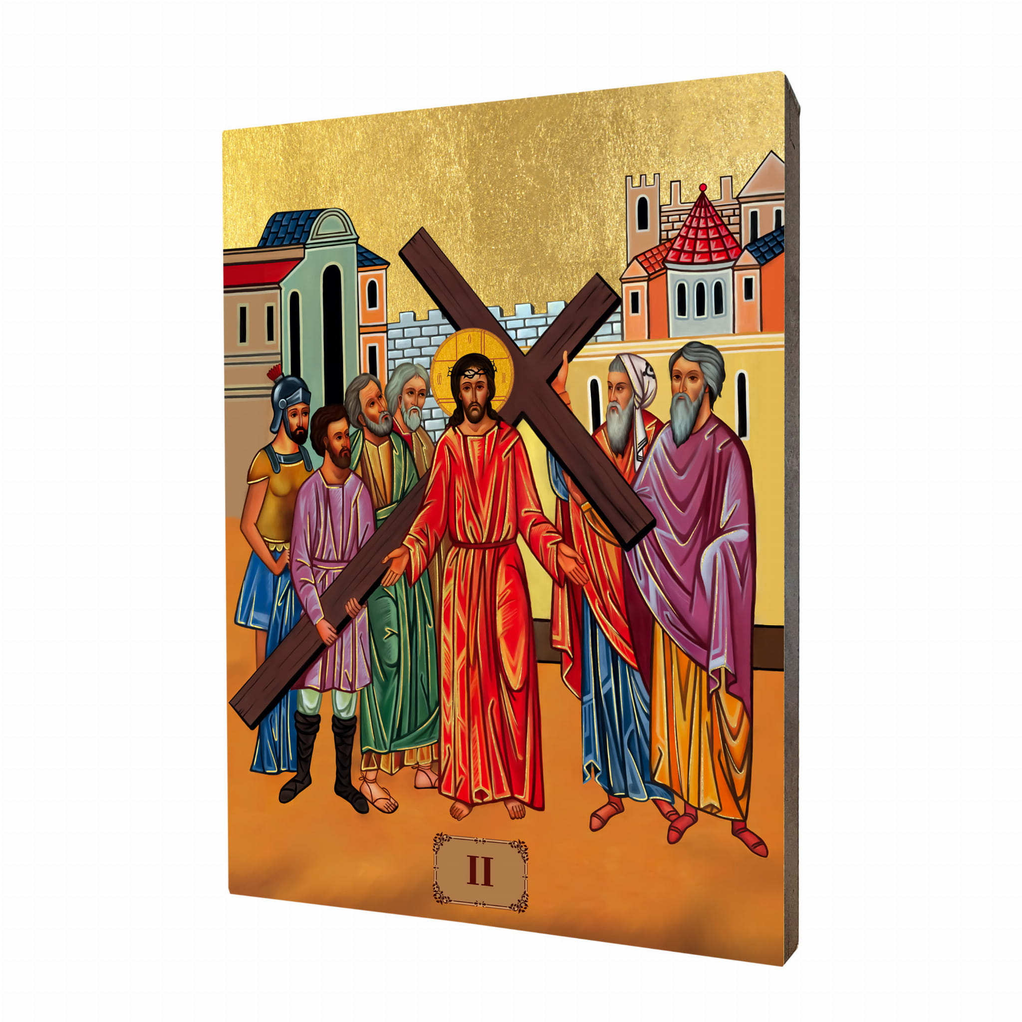 Unsere Kreuzwegstationen sind in einem ikonischen Stil gefertigt, was sie zu einer einzigartigen und äußerst schönen Dekoration für Ihr Zuhause oder Ihre Kirche macht. Jede Station des Kreuzweges wurde sorgfältig und präzise auf eine Kalkplatte aufgetragen und dann von Hand vergoldet, was ihr ein eindrucksvolles und luxuriöses Aussehen verleiht. Unser einzigartiges Herstellungsverfahren sorgt dafür, dass jede Tafel ein Unikat ist und einen eigenen Charakter hat. Dank der modernen Drucktechnik werden die Kreuzwegstationen mit äußerster Genauigkeit reproduziert, so dass ihr künstlerischer Wert voll zur Geltung kommt. Wenn Sie sich für unsere Kreuzwegstationen entscheiden, können Sie sich nicht nur an der Schönheit der sakralen Kunst erfreuen, sondern auch Ihrer Umgebung eine religiöse Dimension verleihen.