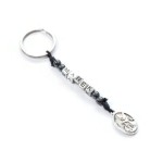 Personalized pendant with Archangel Michael. Pendant made of hematite beads and silver cubes with letters on a black cord with a medallion with Archangel Michael. The ring at the pendant allows you to hang it e.g. by your keys, bag or wallet.