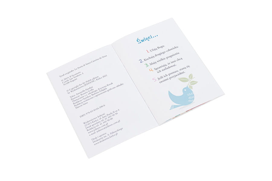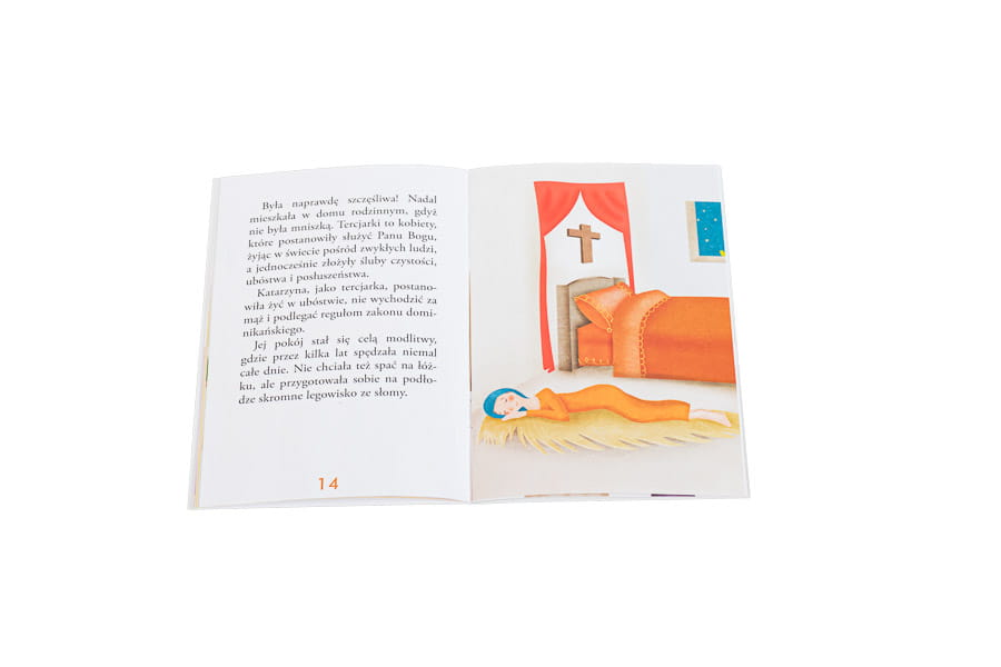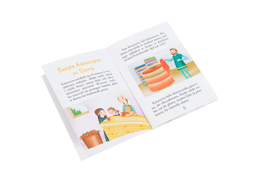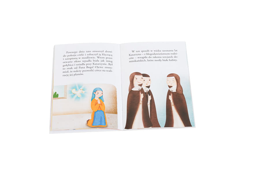 Wielcy przyjaciele Jezusa to seria sympatycznych, pełnych radości książeczek przybliżających dzieciom sylwetki świętych – tych znanych i tych mniej popularnych postaci z dziejów Kościoła katolickiego. Historia św. Katarzyny ze Sieny opowiada losy włoskiej świętej, dziewicy i doktora Kościoła, patronki Europy. Dzięki kolorowym stronom tej publikacji dzieci poznają ciekawe informacje dotyczące życia świętej i jej drogi do nieba. Ta książeczka sprawi, że dzieci zaprzyjaźnią się ze św. Katarzyną.