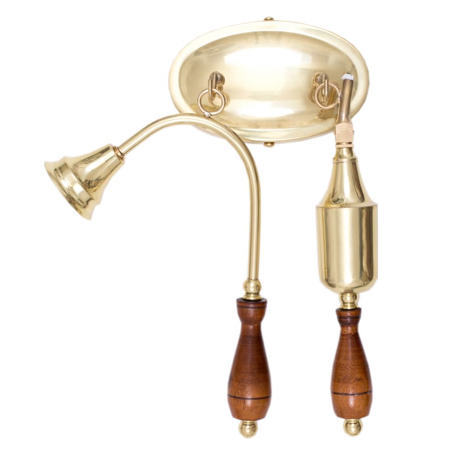 Dieses Set zum Anzünden und Löschen von Kerzen ist nicht nur praktisch, sondern auch eine ästhetische Ergänzung für jede Sakristei. Das Set umfasst einen Anzünder mit eingebautem Ölbehälter und einen Löscher, beide an einem eleganten Messinghaken befestigt. Dank präziser Verarbeitung vereint das Set Funktionalität mit raffinierter Ästhetik.