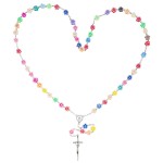 Gummiperlen-Rosenkranz in Blumenform - päpstliches Kreuz und Madonna an Kette