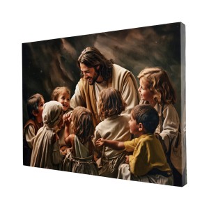 Dieses äußerst realistische Leinwandgemälde bezieht sich auf die Worte von Jesus selbst, der sagte: "Lasst die Kinder zu mir kommen". Wir sehen Jesus umgeben von lächelnden Kindern. Dieses Gemälde fängt die Essenz der Heiligen Schrift ein, die zeigt, wie wichtig es ist, unsere Herzen für die Unschuld und Weisheit der Kinder zu öffnen und sie mit Liebe und Respekt zu empfangen.