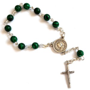Malachite one-decade rosary with John Paul II and Our Lady of Czestochowa.