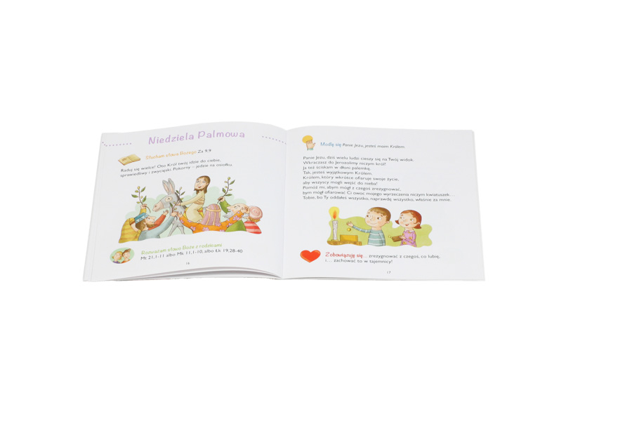 Ta książeczka pomoże dzieciom przeżyć czas Wielkiego Postu. Proponuje małym chrześcijanom modlitwę i medytację słowa Bożego, podpowiada drobne wielkopostne postanowienia. Pozwala przygotować dzieci na uroczystość Zmartwychwstania Pańskiego.