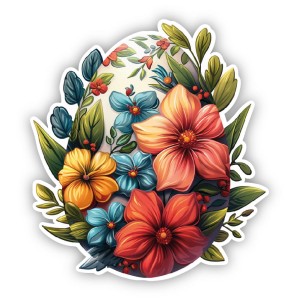 Świąteczna naklejka w formie jajka wielkanocnego otulonego pięknymi kwiatami.