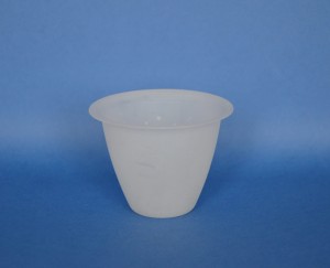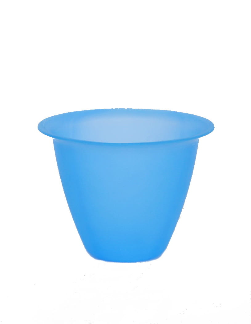 Blue and white plastic Fatima candle casing. Made of massive plastic. The plastic candle aril prevents the flame from blowing out and at the same time protects the hand from dripping hot wax.