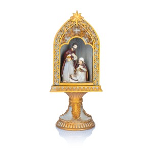 Podświetlany Ołtarzyk Bożonarodzeniowy Świętej Rodziny w Złotej Oprawie