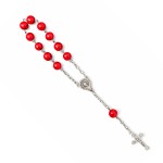 Introducing a refined and convenient single decade rosary, meticulously crafted to enhance your prayer experience. The spiritual depth is mirrored by the intense, deep red color of the natural stone beads, which contrast beautifully with the elegant, polished silver metal elements. Perfectly sized at 17 cm, this compact rosary fits comfortably in your hand, pocket, or as a serene car decoration, allowing for a moment of reflection and devotion wherever you go.