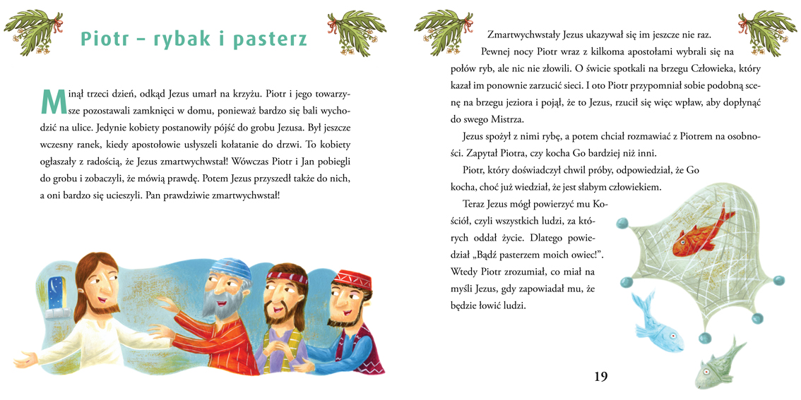Szymon był dzielnym rybakiem który po spotkaniu Pana Jezusa porzucił wszystko, by pójść za Nim. Jezus nadał mu nowe imię Piotr czyli Skała i powierzył mu naprawdę wyjątkową misję - misję prowadzenia kościoła: „Ty jesteś Piotr [Skała], i na tej Skale zbuduję Kościół mój” (Mt 16,18).