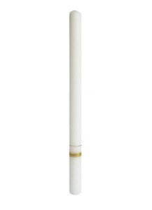 A simple thunder candle with a golden stripe. Tall white candle.