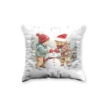 Bringen Sie festliche Stimmung ins Kinderzimmer mit diesem niedlichen Kissen, das Kinder in einer Winterlandschaft beim gemeinsamen Schneemannbauen zeigt. Hergestellt aus hypoallergenem Satinmaterial, bietet es Weichheit, Sicherheit und Komfort. Perfekt als Weihnachtsdekoration, die jedem Raum Wärme und Freude verleiht.